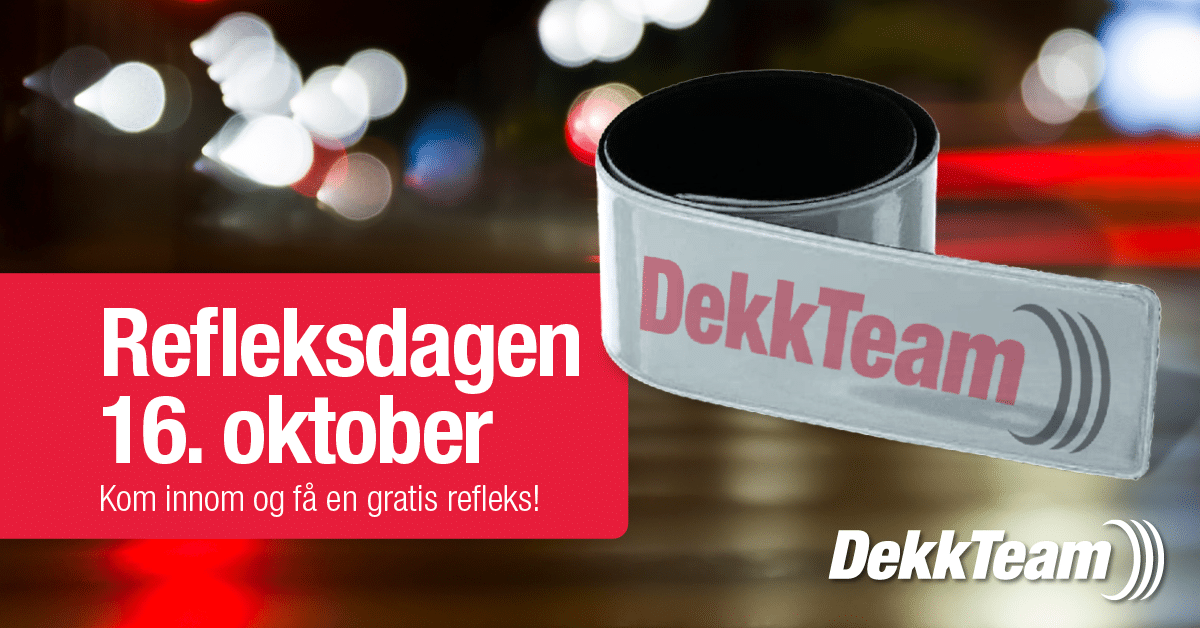 Vi i DekkTeam jobber stadig med å gjøre hverdagen tryggere for alle som ferdes på veien. Det er ikke bare dekk, hjul og veigrep som kan bedre sikkerheten på veiene. Når høsten, vinteren og mørket stiger på, er fotgjengere og passerende i trafikken umulige å se hvis de ikke har lys eller refleks på seg. Fest en refleks, og gjerne flere på jakken, sekken eller baggen, så kan du ferdes tryggere i mørket.